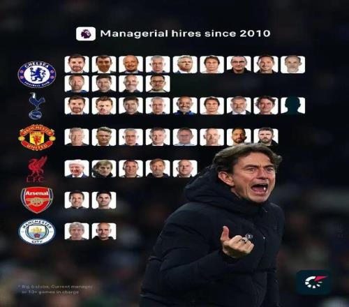 这张图发人深思。曼城佩公之前是曼奇尼,阿森纳埃梅里之前就是温格了,利物浦霍奇森之前是贝尼特斯。像切尔西换帅频繁但也有好几个教练收获了不少冠军。但拉长十几年看,似乎换帅越少的球队成绩越稳定。然而对于球队、媒体、球迷来说,一个赛季实在太漫长了,每场比赛后的感受都会被叠加,谁能忍住对这赛季战绩不如预期且观感变差的主教练不动刀呢?豪门如此,何况还有降级压力的英超中下游?