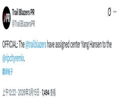 北京时间3月15日,开拓者官方宣布将球队中锋杨瀚森下放至G联赛混音队。昨日对阵爵士的比赛中,杨瀚森只在比赛最后时刻登场48秒,各项数据为0,正负值-3。