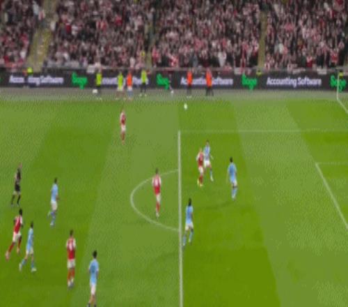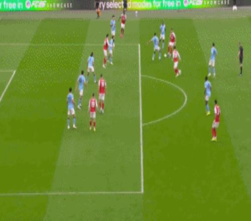 开场仅7分钟,萨卡右路突破横传,苏维门迪跟上直塞,哈弗茨单刀推射,被特拉福德神勇封堵,随后萨卡连着两脚补射,依然没能打穿曼城门将的十指关。