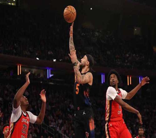 北京时间3月25日,NBA常规赛尼克斯主场对阵鹈鹕,尼克斯率先压制鹈鹕首节取得14分领先优势,鹈鹕用团队攻势逐步反超比分,尼克斯随后夺回领先优势。末节双方持续紧咬比分缠斗,布伦森连续得分引领尼克斯保持微弱领先优势,最终尼克斯以121-116赛季横扫鹈鹕豪取7连胜,尼克斯连续两个赛季横扫鹈鹕,胜场差追平东部第二的凯尔特人,鹈鹕遭遇2连败。